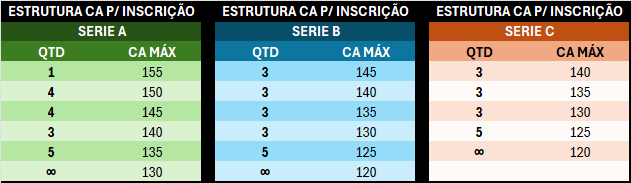 OBSERVAÇÃO: CA máximo da Serie B será 145, porém, serão considerada a inscrição de 3 jogadores que excedem esse valor.